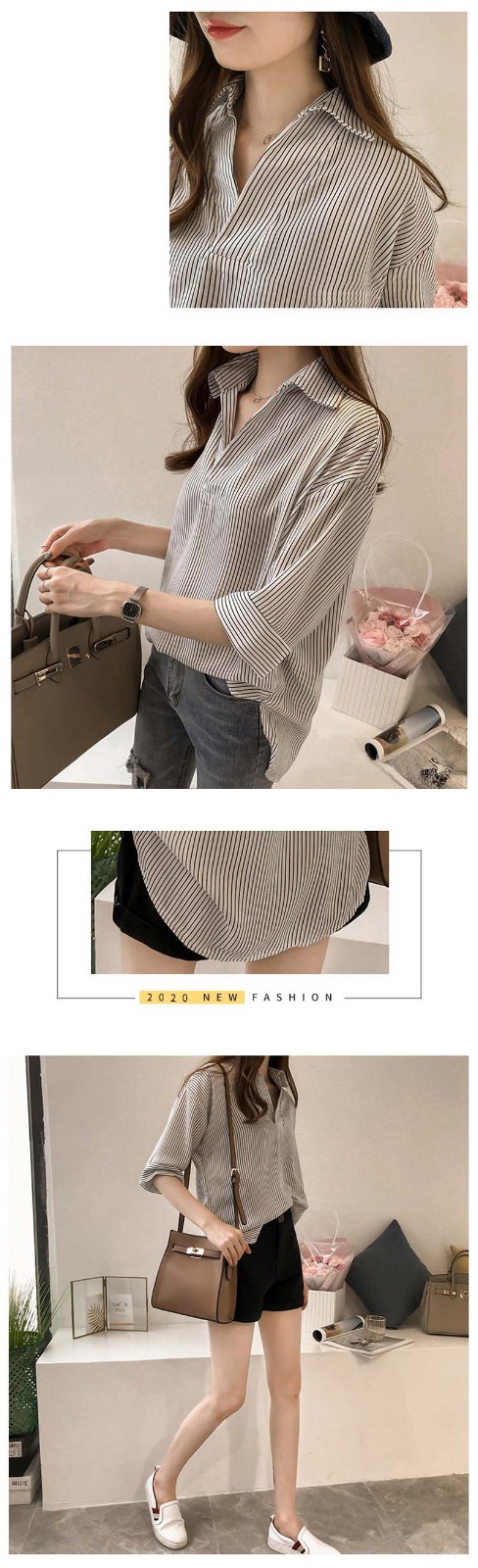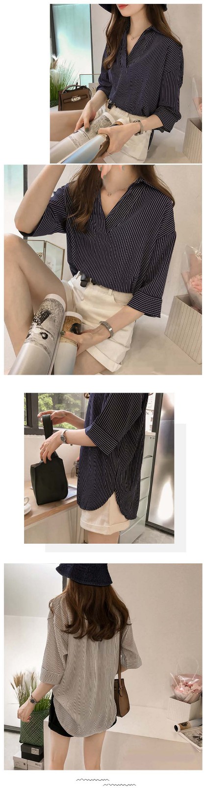 半小時前新品上市,勁爆特殺!全場大放送,單件低至NT$432,2020新款夏裝中長款韓版寬松顯瘦條紋襯衫女七分袖,廠家直銷,超值優惠,買到賺到!過後漲價! - 【買一送二】任選3件 僅需NT$1298,單件低至432