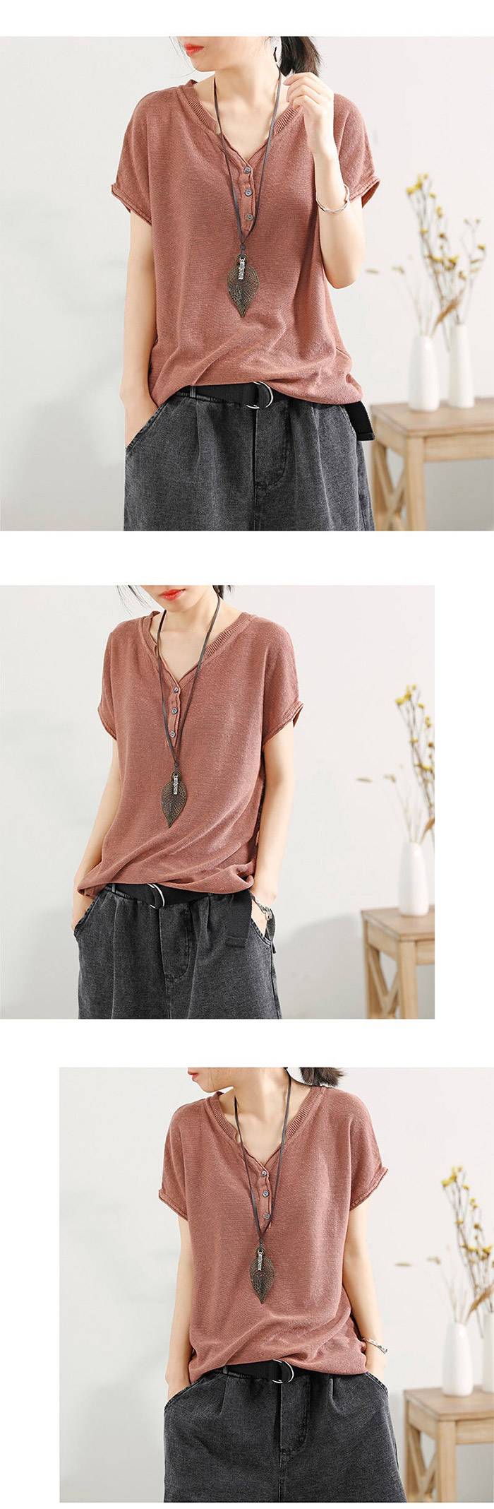 【夏季熱銷款】冰絲薄款V領短袖【超薄透氣】【舒適百搭】【促銷活動還在進行中哦!】